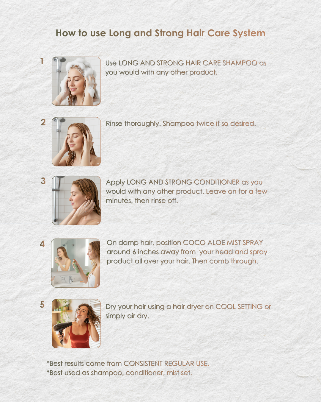 expand_moreHow to Use Your Long and Strong Hair Care System